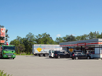 苫小牧東インターチェンジを降りて苫小牧方面に向かうと一番に見えてくるコンビニです。駐車場が1000坪もあり、観光バスもらくらく駐車できます。