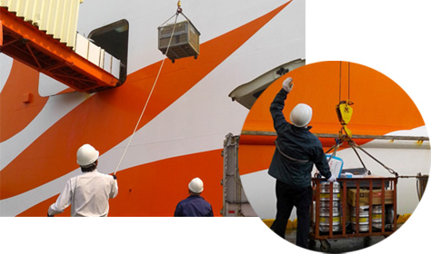 苫小牧西港フェリーターミナルに就航する各フェリー船社様へ、船内レストランのメニュー食材をはじめとして、船内売店の商品納入を主に行っております。
